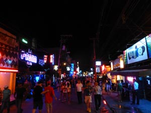 I have a little office set up in my apartment over here. Other than a daily visit to the gym or pool for exercise, and an occasional visit to the mall for supplies, I spend long days in my little office working on my normal business responsibilities. I usually wrap that up at around 7:30 PM and then catch a trike over to the entertainment district to have dinner in an expat restaurant where a bunch of mostly American and Australian guys hang out. This is a normal restaurant serving mostly American and some Thai food. About 5 dollars buys a good meal and two glasses of wine. This is my personal reward for putting in a productive day. I am usually content to sit back, sip my wine and watch the world go by. Since the restaurant is on the edge of the entertainment district, there is always a circus going on just outside. That’s an understatement.